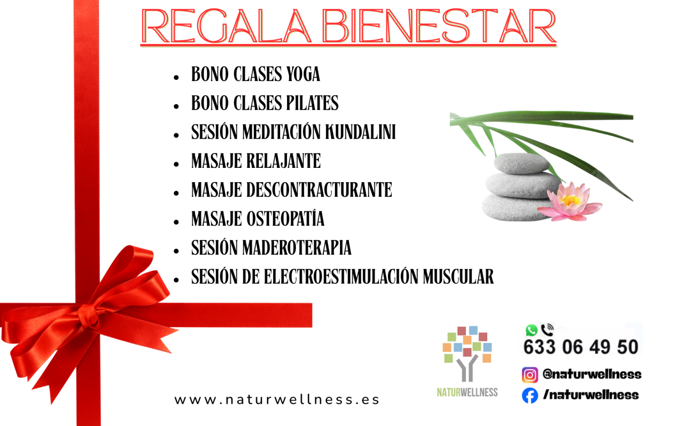 En Naturwellness hemos creado tarjetas regalo con clases y terapias pensadas para cuidar cuerpo y mente.
